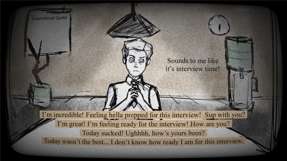 Made for SPOUGDA 2024. Ask questions, get weird answers, and watch as the world around you gets weirder and weirder. Will you be hired? Do you even want to be at a place like this?